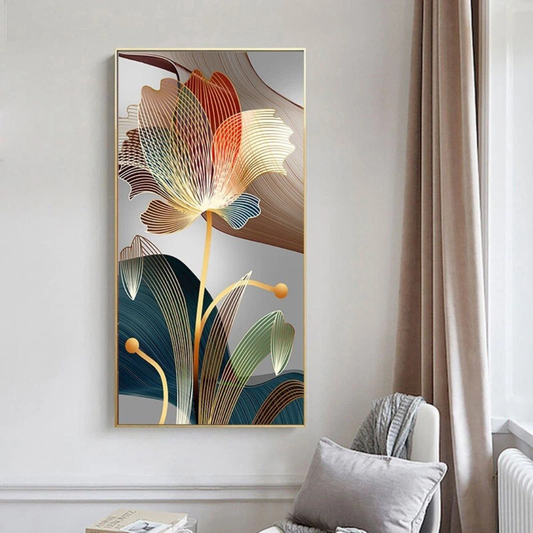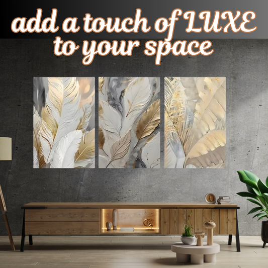 3pce Luxurious Golden Leaves Canvas Art (framed)